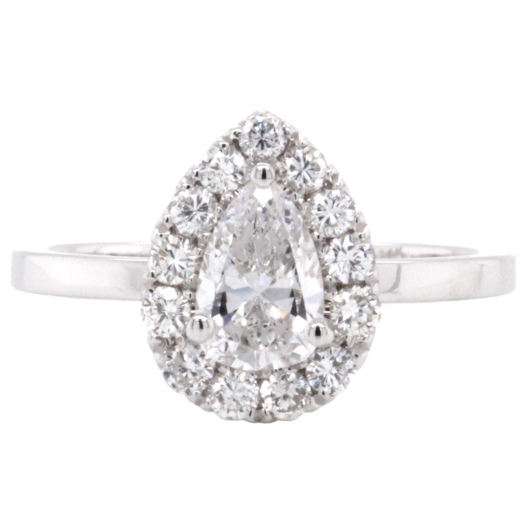 14k White Gold 0.71 ct. tw. Pear Shape Brilliant Cut Center Diamond Halo Pave Engagement Ring